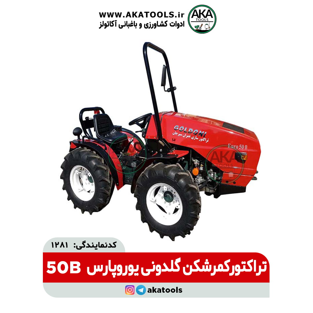تراکتور گلدونی کمرشکن EURO 50B با موتور یوروپارس یکی از بهترین تراکتورهای کمرشکن باغی موجود در بازار ایران می باشد که تماماً هیدرولیک می باشد. موتور این تراکتور موتور فابریک شرکت عمران سیرجان می باشد.
